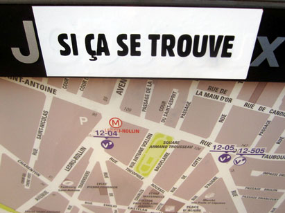 Ces « Adages Adhésifs », comme autant de cadavres exquis typographiques, ne prennent sens qu’in situ, en plein air (de rien), au moindre recoin de la rue, n’importe où mais pas n’importe comment, pour que ça colle vraiment entre brève de style et fragment de réalité. Histoire d’en foutre partout où ça nous plaît, d’inventer de petites légendes à la vie quotidienne, de la sous-titrer pour de faux, de créer ici et là très littéralement des lieux-dits.