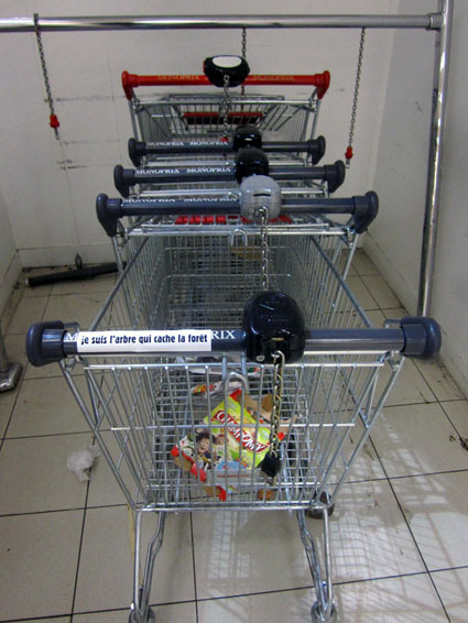 En manière d’épilogue, on repensera à un certain Kader, âgé de 59 ans, employé depuis 8 ans dans un Monoprix de Marseille, qui a été mis à pied à titre conservatoire le 7 juillet 2011 par le gérant de l’enseigne pour avoir récupéré dans la benne à ordure du magasin six melons et deux salades. Menacé de licenciement, puis lavé de tout soupçon, il incarne à la fois un working-poor parmi tant d’autres susceptible de se pointer au Resto du Cœur pour boucler ses fins de mois, et la figure plus clandestine du « glaneur » de fin de marché que les grandes surfaces justement cherchent à éloigner de leur réserve d’invendus, en mettant sous clef les bennes à ordures et contrôlant chaque déstockage de ces denrées encore comestibles mais sacrifiées d’office. Faire consommer à flux tendus, et puis consumer les restes, c’est la logique mortifère de Carrefour et de son sponsoring philantropique. Et face à ce gâchis structurel, on entrevoit une autre réaction possible : récupérer ses droits, plutôt que se faire récupérer par on ne sait quel logo humanitaire. Mais pour interagir, se solidariser en acte, il faut aussi avoir décloisonné dans sa tête certains stéréotypes, et les oppositions trompeuses entre la marginal débrouillard et l’honnête salarié. Et de ce point de vue, la meilleure façon de prendre le double discours de Carrefour au pied de la lettre, c’est sans doute d’aller y glaner à plusieurs, au pays merveilleux de l’hyperabondance, et tant qu’à faire, direct dans les rayons plutôt qu’à la poubelle, pour reprendre ses droits collectifs à la source, «autoréduction», ça s’appelle. Et depuis quelques années, quelques collectifs de chômeurs & de précaires ont commencé à prendre la bouffe sur le tas et à sortir par la grande porte, comme ici ou là. Même si la police est souvent là pour veiller au tri des futurs déchets, soit tout bêtement humains, soit provisoirement valorisables dans la limite des dates de fraîcheur.