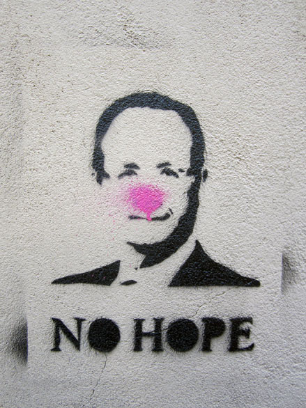 De ne pas oublier cette jeune fille manouche qui, délaissant sa mère occupée à faire la tournée des poubelles pour y dénicher quelques rebuts de métal à apporter au ferrailleur d’à côté, s’était arrêtée devant un panneau d’affichage électoral, avant de repasser au feutre jaune fluo les lèvres de la candidate écologiste Eva Joly, puis de remplir les lettrages blancs du slogan de campagne du Front de Gauche, mais qui, faute de temps, sa mère l’ayant déjà rappelée à l’ordre, n’avait pu colorier que le NEZ de PRENEZ et le VOIR de POUVOIR.
