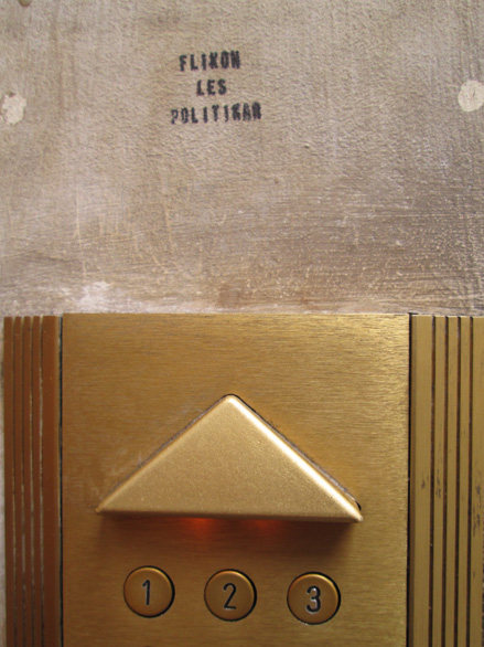 Petite découverte en composant le digicode, avant d’aller bouffer chez des amis du centre-ville parisien, ce coup de tampon outrageur & très basiquement orthographié.