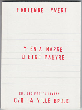 J’ai plus récemment découvert les opuscules tamponnés de la main de Fabienne Yvert, dont ce petit dernier, d’un rouge intimiste et rageur, qui vient de sortir aux éditions La Ville brûle.