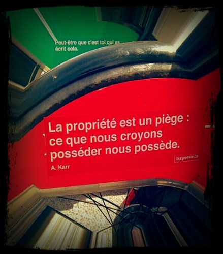 D’autres, du mouvement BixiPoésie, on préféré coller des stickers pirates sur le garde-boue des vélos municipaux, en lieu et place des slogans publicitaires récemment alloués à des sponsors privés.