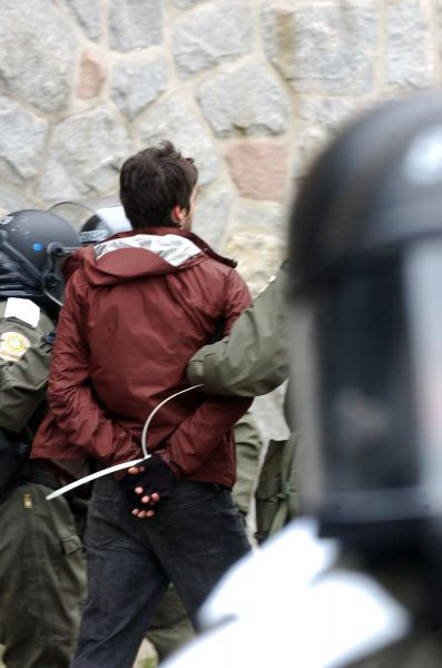 Parmi les gardés à vue préventifs du jour, la mascotte des derniers cortèges, un prof de philo déguisé en «Anarchopanda», selon son pseudo-profil sur Fakebook. Qui contrevient ainsi au récent projet municipal d’interdire aux manifestants le port d’un masque «sans motif raisonnable». Et ci-dessous le contrevenant, en liberté… surveillée.
