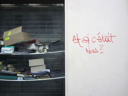 Mais cet expulsable en sursis, auquel on a coupé les vivres et l’électricité a décidé de tenir un journal mural, pour rompre le cercle vicieux de son opprobe sociale. Tant qu’à passer pour un occupant abusif – un de ces «assistés» voués aux gémonies par la gauche & la droite de Manuel Vals à Marine Le Pen –, inutile de s’en cacher, mieux vaut livrer son cas de (sale) espèce de (faux-)chômeur à la publicité. Et sortir de ses gonds pour rester dans la place.