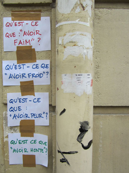 Hier encore, il continuait sa lutte, par petits mots interposés, de moins en moins solitaire, vu les témoignages de solidarité de certains voisins et curieux de passage. Face aux chinoiseries des bureaucrates & huissiers, son dazibao improvisé tenait encore le haut du pavé.
