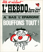 Au milieu des années 60, les fondateurs de Hara Kiri (et du futur Charlie) se sont ouvertement inscrits dans une tradition satirique à-la-française, cette verve confusément libertaire qui fit les heures de gloire du Canard sauvage, de l’En-dehors ou de l’Assiette au Beurre durant la Belle Époque. Ils ont donc repris à leur compte le flambeau iconoclaste des dessinateurs et polémistes du début du XXe siècle, eux qui avaient combattu l’alliance du sabre & du goupillon à la tête d’un Etat soi-disant laïcisé et mis en pleine lumière, au revers de cette médaille, la logique homicide des injustices sociales. Si, un demi-siècle plus tard, le programme restait le même, il s’agissait désormais, pour la bande à Charlie, de renouveler leur cible, au diapason contestataire des seventies. S’attaquer aux puissants, c’était dénoncer frontalement l’ordre disciplinaire de l’école, de la caserne et de l’usine, lui renvoyer en miroir l’image de son arbitraire «bête et méchant». Et si l’anticléricalisme primaire y jouait encore un rôle important – avec son lot de blagues scatologiques à propos de Jésus ou de son avatar vaticanal–, cette provocation s’attaquait aux vestiges de notre religion dominante, celle qui pesait encore sur nos us et coutume, qui nous aliénait de l’intérieur. C’était la merde que chacun d’entre nous pouvait avoir dans la tête qui était visée, cette putain de mauvaise conscience biblique qui nous confrontait au ridicule de notre propre civilisation, et pas les barbares de la religion d’à côté, ces étrangers irréductibles à nos universelles valeurs… mais n’anticipons pas.