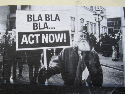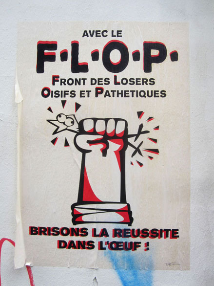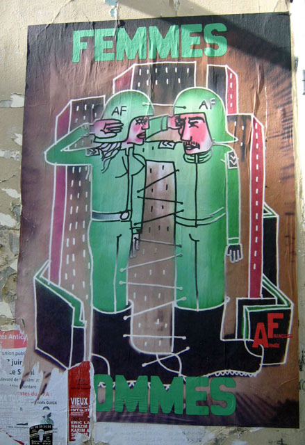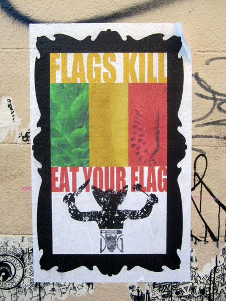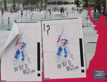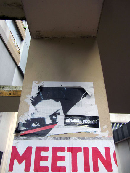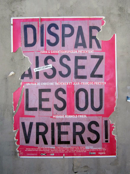 Histoire de partager mes trouvailles récentes, ci-dessous, un rapide panorama de quelques affiches photographiées par mes soins, à mi-chemin du politique & du poétique, mais sans œillères militantes ni égotisme arty. Aux limites fluctuantes d’une tradition subversive affichée et du détournement verbal des activistes du pochoir sur papier & autres sérigraphies. À ces rares occasions où, entre des sensibilités disparates, parfois incompatibles, ça se met à coller vraiment.