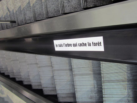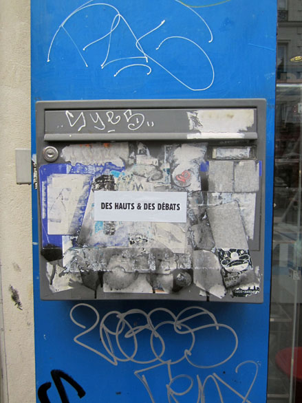 Alors, pour donner le mauvais exemple, ci-dessous, quelques photos de ces bribes d’aphorismes & autres parasites verbaux pris en flagrant délit de dégradation de l’espace publique.