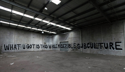 Et là, il y a une concurrence déloyale entre le sticker promotionnel – avec logos, formules choc et coups de buzz – et celui qui n’a rien à vendre, qui détourne texte & imagerie pour le plaisir, disperse des apartés visuelles, crée des zones de turbulences visuelles. Sauf qu’entre ces deux tendances, on bien a du mal à distinguer certaines nuances, comme dans le cas du fameux OBEY© qui se voudrait subversif par antiphrase, mais ne diffuse sa contremarque dans l’espace urbain que pour mieux fourguer en magasin des produits dérivés à son image. Y’a même un nom pour ça : subvertissement, ça s’appelle, un mot-valise qui compacte l’élan subversif et le commerce du divertissement.
