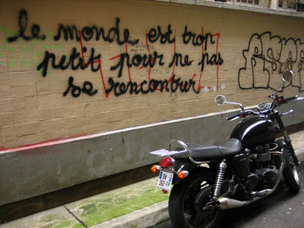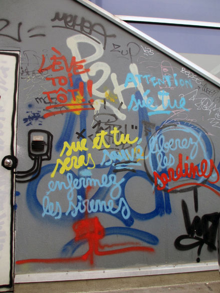 Outre cette compilation systématique & hasardeuse de quarante ans d’écritures murales, on trouvera sur le site deux diaporamas sur le même sujet, l’un consacré aux bombages des années 70 et l’autre s’enrichissant au jour le jour d’inscriptions plus récentes, glanées sur le Net ou prises sur le vif, sur cette page-là.