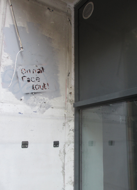 D’où cette compilation numérique, comme un chantier à ciel ouvert, qui voudrait recenser ces bribes d’écritures maladroites, lacunaires, éphémères, glanés depuis trois années dans des livres, revues, sites web ou, pour les plus contemporaines, avec mon appareil photo toujours aux aguets… Ici, nul souci d’exhaustivité, puisque la tâche est infinie par définition même. Mais, tout de même, déjà plus de 2300 graffiti distincts – pris en note, datés et localisés – dans ce recueil perpétuellement provisoire, à feuilleter ou télécharger en format pdf ici même….