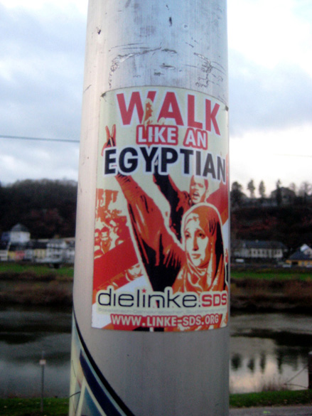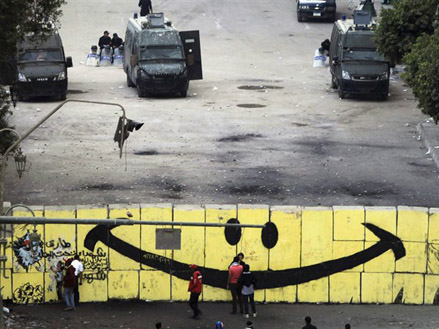 Encore une piste à explorer, à propos des murs obstruant les alentours de la place Tahrir, couverts de graffiti, fresques et pochoirs par les insurgés de novembre-décembre. J’y avais consacré un article illustré 2011. Je viens d’y ajouter un post-scriptum touchant au dernier événement graphique de cette guerre des nerfs et des murs. C’est par là, tout en bas.