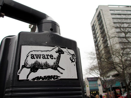 N’empêche, les sticker sans but lucratif ni propagande d’adhésion, ça existe, même s’il faut se méfier des contrefaçons duplicitaires. Au gré de mes flâneries, j’en ai trouvé une ribambelle sur le Net et photographié pas mal d’autres in situ. Petite revue en images des dernières trouvailles scotchantes avant l’enneigement hivernal.