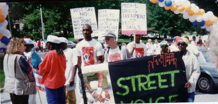 Nearly all of the people from Street Voice and shelter days are dead now. The last person. Tracker Horse, «The Darkman», who wrote several of the pieces in the book, died two years ago, of AIDs and heart failure. Another moved to Philadelphia where he became very active in the ACT UP branch and prison issues there. So hundreds of people I knew from that era, a little over a decade ago, have just disappeared, many due to AIDS and overdoses, many more due to premature heart attacks, shot in drug deals, knifed in senseless arguments, or by kidney and liver failure brought on by years of drug use and living on the street. All were younger than 50 years old. Some may be in jail (one robbed several banks and has many years prison sentence from what I later heard second hand)