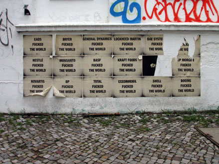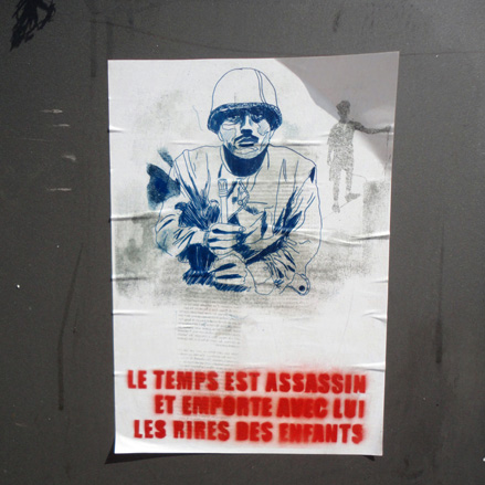 Histoire de partager mes trouvailles récentes, ci-dessous, un rapide panorama de quelques posters hors normes photographies par mes soins ou glanés au-delà des frontières, sur le Net, à mi-chemin du ready-made loufoque & de l’attentat poétique, du coup de gueule & de l’ironie contondante mais sans œillères militantes ni égotisme arty. Aux limites fluctuantes d’une tradition subversive affichée et du détournement verbal des activistes du pochoir sur papier & autres sérigraphies. À ces rares occasions où, entre des sensibilités disparates, parfois incompatibles, ça se met à coller vraiment.