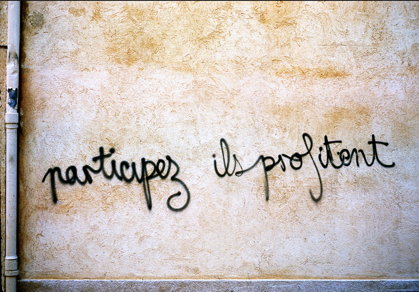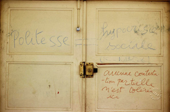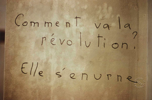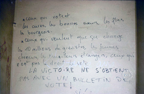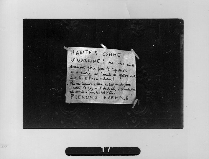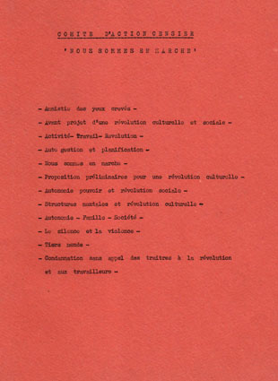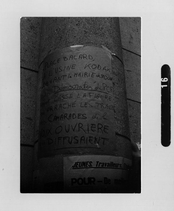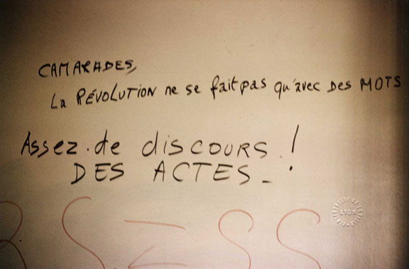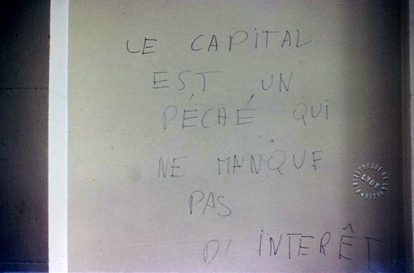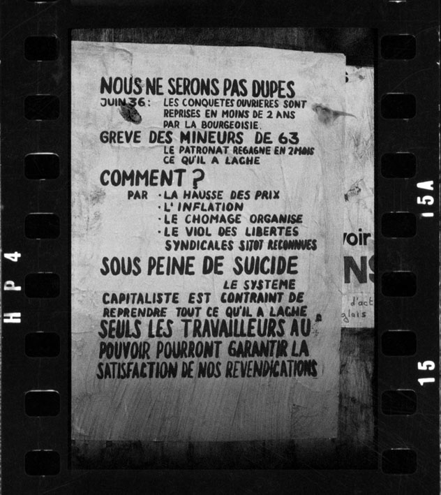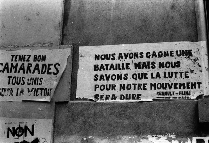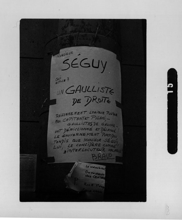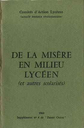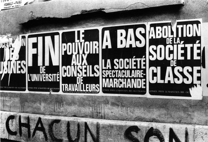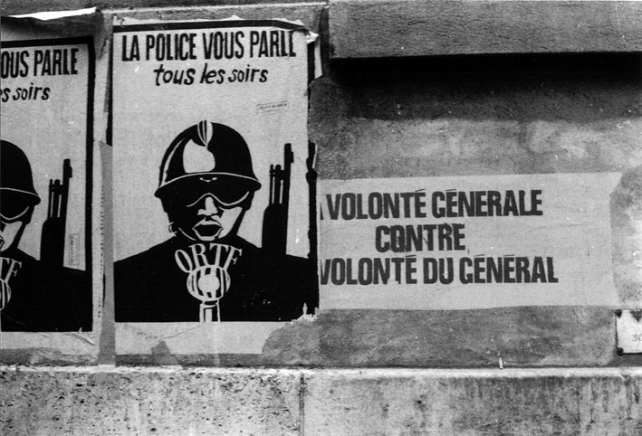 Yves Pagès – Parmi les documents collectés par ma mère à partir du printemps 68, j’ai entrepris d’en exhumer certains, ceux qui, à la croisée des influences marxiennes, reichiennes, situs et libertaires, rendent encore l’écho d’un débat vivant, utopique et concret, sur les rapports du politique et de la vie quotidienne : d’abord, la cinquantaine de pages de Censier en marche, rédigé à chaud par le Comité d’Action Travailleurs-Étudiants du dernier bastion parisien des grèves universitaires –manifeste qui est peut-être la production collective la plus dense de l’époque, hors chapelle ou courant identifiés ; puis une curieuse retranscription d’une journée entière de palabre à l’Odéon occupée, le 7 juin 68 ; puis, publiée l’année suivante, De la misère en milieu lycéen, issu de la « tendance révolutionnaire » des Comités d’Action Lycéen qui, malgré les apparences, n’est en rien le pâle décalque de la fameuse brochure situationniste, mais une défense passionnante de l’autonomie du soulèvement de le jeunesse contre « l’aliénation » des récupérateurs et démobilisateurs de toutes obédiences. Autres pistes textuelles ou visuelles, je propose ici même une première compilation de tracts couvrant mai 68 et ses suites ainsi qu’un diaporama sur l’affichisme sauvage au Quartier Latin, bientôt suivi d’un autre concernant les sérigraphies des Comités d’Action parisiens, moins fameuses, mais dont l’esprit iconoclaste à continué d’essaimer au début des années 70.