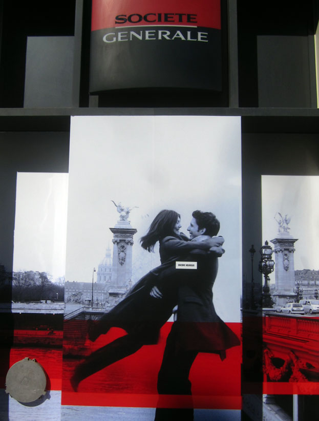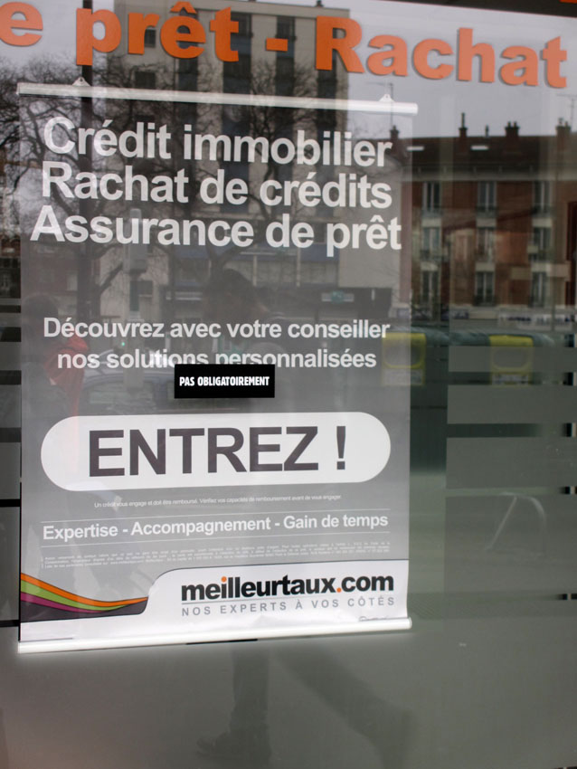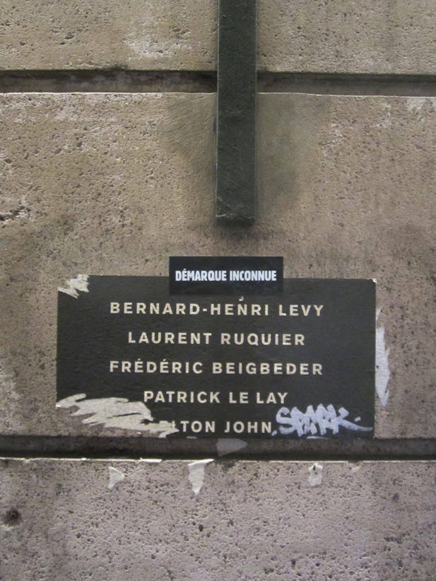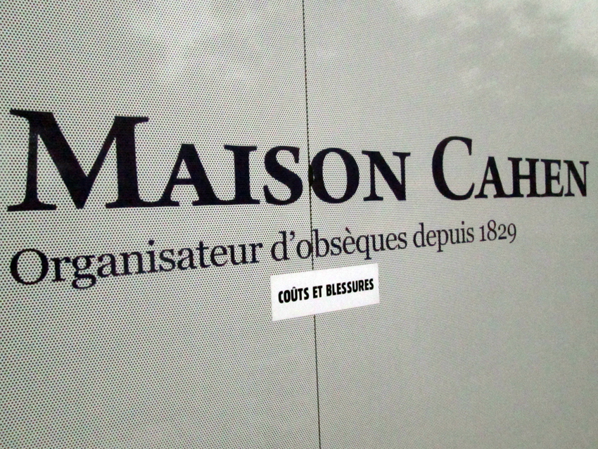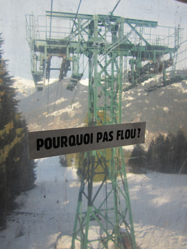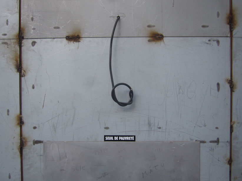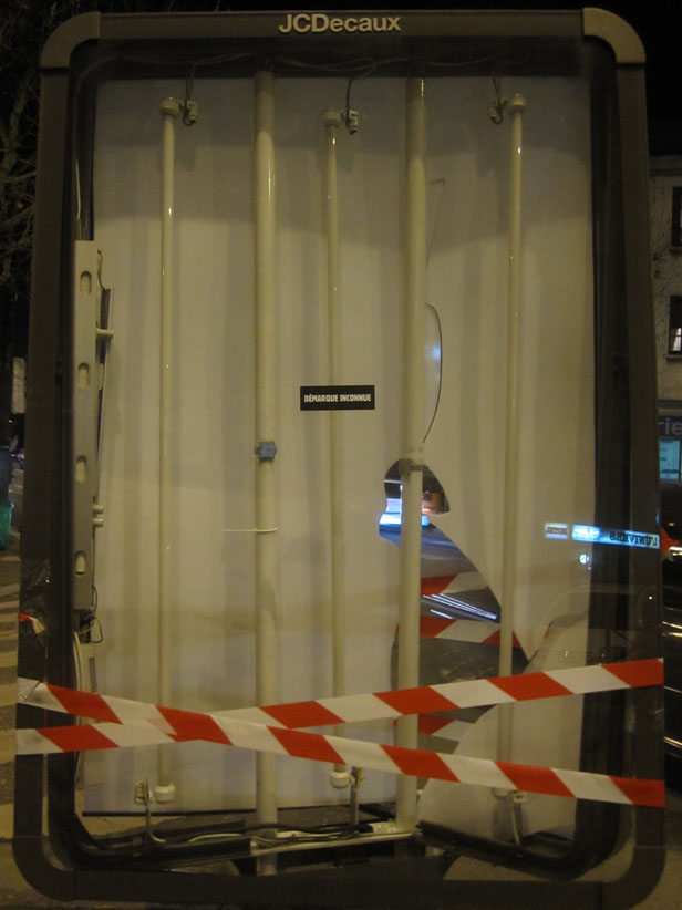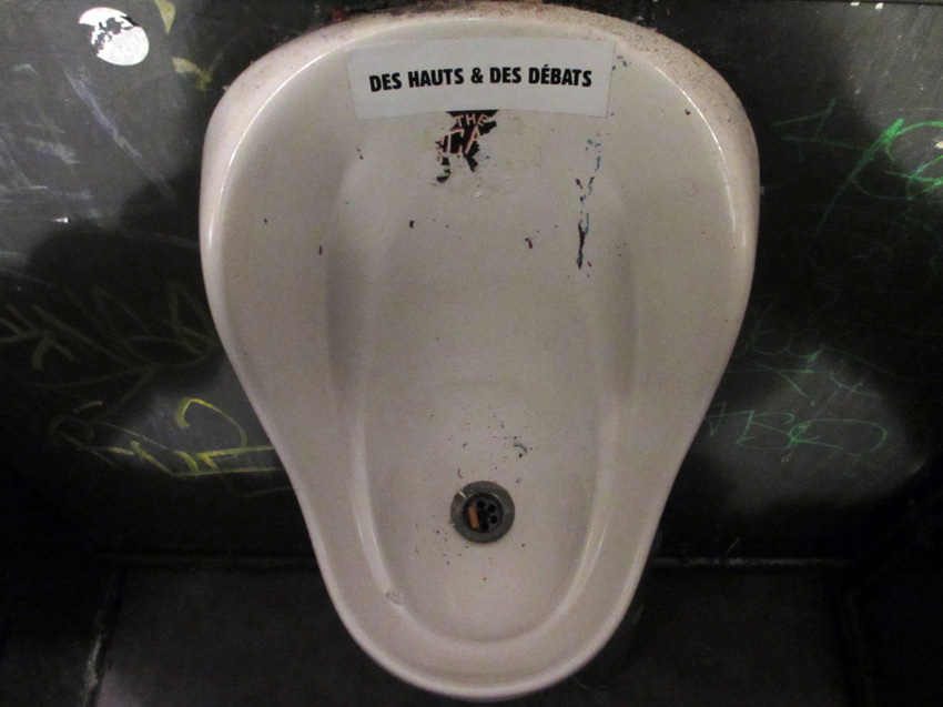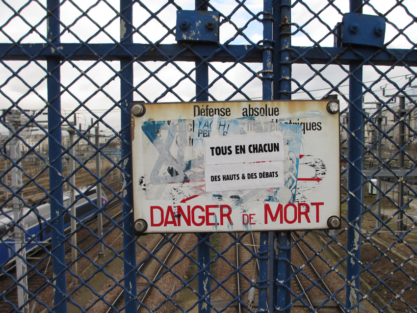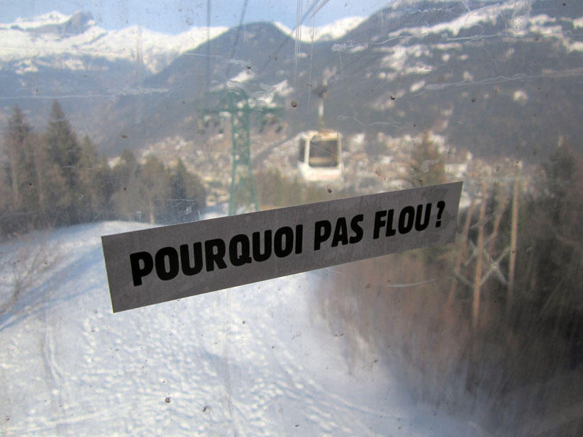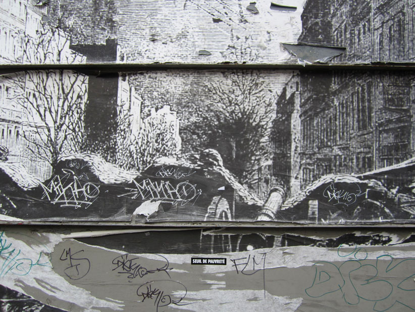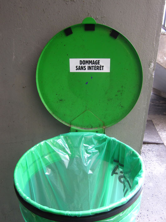 Au détour d’une rue, on remarque telle devanture, telle bouche d’incendie, tel escalator, tel sens interdit, tel pas de porte, telle cabine téléphonique, telle sucette publicitaire et il vous vient une pensée réflexe, une bribe de phrase par association d’idées torves. Et puis, pour passer à l’acte, superposer l’intuition fugace avec ce fragment de réalité, pour que ça colle vraiment, un seul moyen : fabriquer des stickers et en foutre partout où ça nous plaît. Avec l’ami Philippe Bretelle, on a fabriqué une vingtaine de spécimens en noir sur blanc et réciproquement. Histoire d’inventer de petites légendes à la vie quotidienne, de la sous-titrer pour de faux, de créer ici et là très littéralement des lieux-dits. Juste un lot d’étiquette pour dessiller, déranger, déclasser nos habitudes visuelles. En aparté & à l’œil nu parce que, l’air de rien, il suffit d’un regard de travers, d’un détail qui cloche, d’une voix off discordante, d’un foutu lapsus optique pour trouver dans sa tête l’issue de secours et tailler la route ailleurs. archyves.net – Yves Pagès – adages adhésifs –