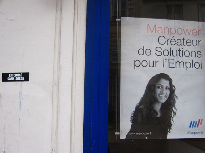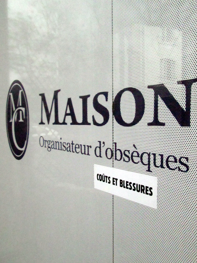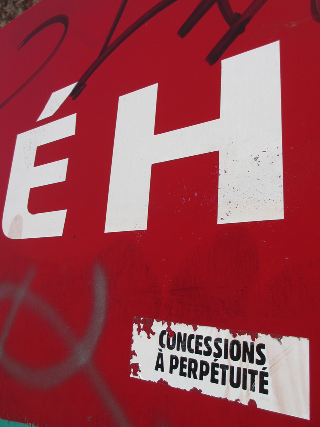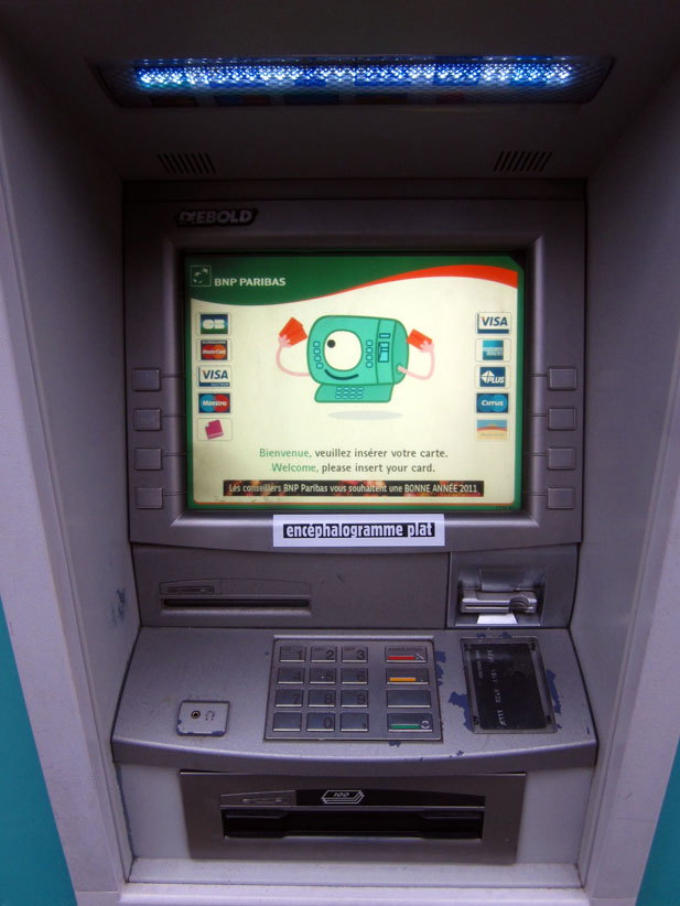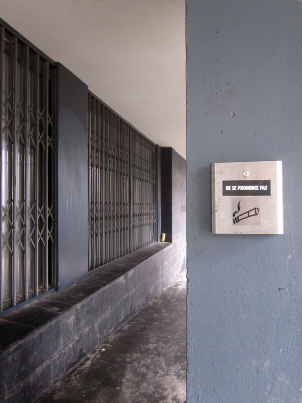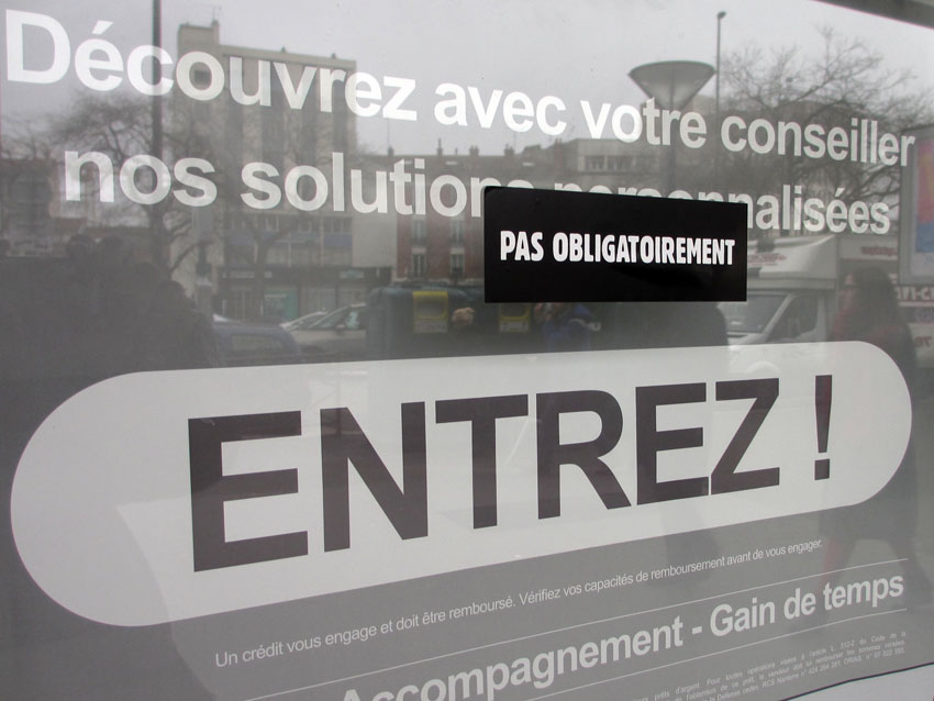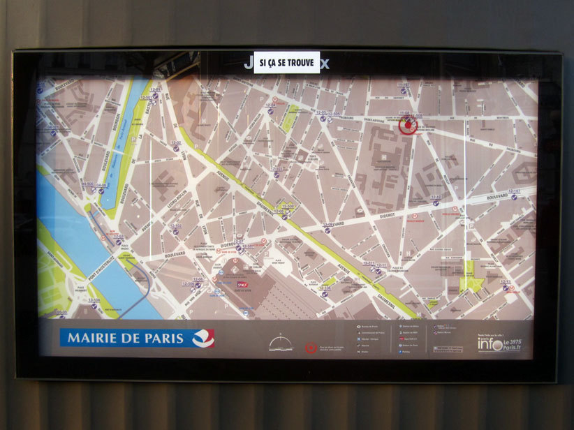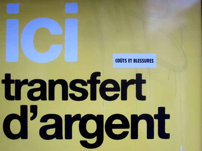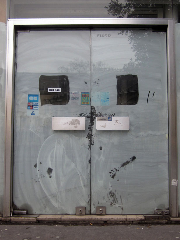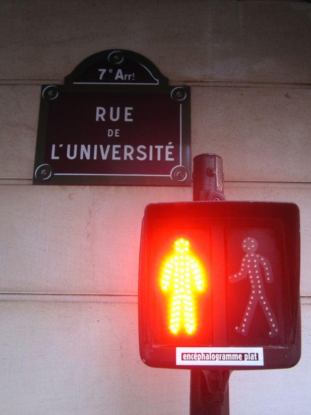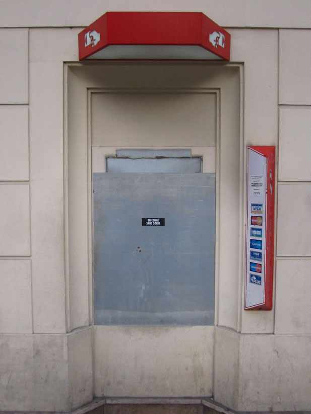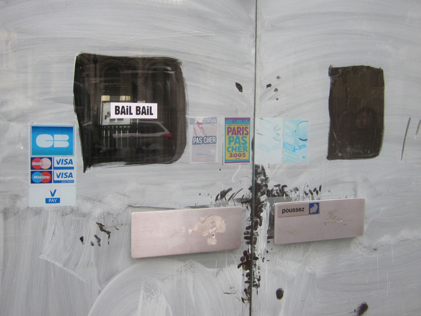 Au détour d’une rue, on remarque telle devanture, telle bouche d’incendie, tel escalator, tel sens interdit, tel pas de porte, telle cabine téléphonique, telle sucette publicitaire et il vous vient une pensée réflexe, une bribe de phrase par association d’idées torves. Et puis, pour passer à l’acte, superposer l’intuition fugace avec ce fragment de réalité, pour que ça colle vraiment, un seul moyen : fabriquer des stickers et en foutre partout où ça nous plaît. Avec l’ami Philippe Bretelle, on a fabriqué une vingtaine de spécimens en noir sur blanc et réciproquement. Histoire d’inventer de petites légendes à la vie quotidienne, de la sous-titrer pour de faux, de créer ici et là très littéralement des lieux-dits. Juste un lot d’étiquette pour dessiller, déranger, déclasser nos habitudes visuelles. En aparté & à l’œil nu parce que, l’air de rien, il suffit d’un regard de travers, d’un détail qui cloche, d’une voix off discordante, d’un foutu lapsus optique pour trouver dans sa tête l’issue de secours et tailler la route ailleurs. archyves.net – Yves Pagès – adages adhésifs –