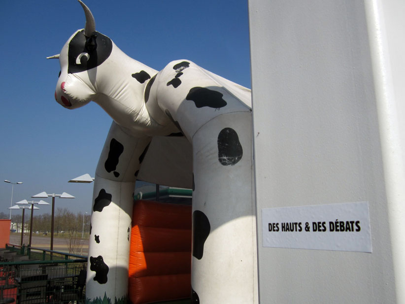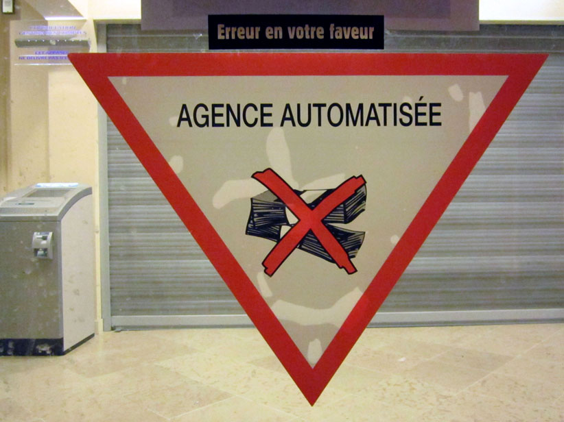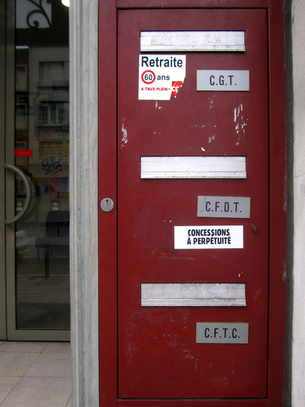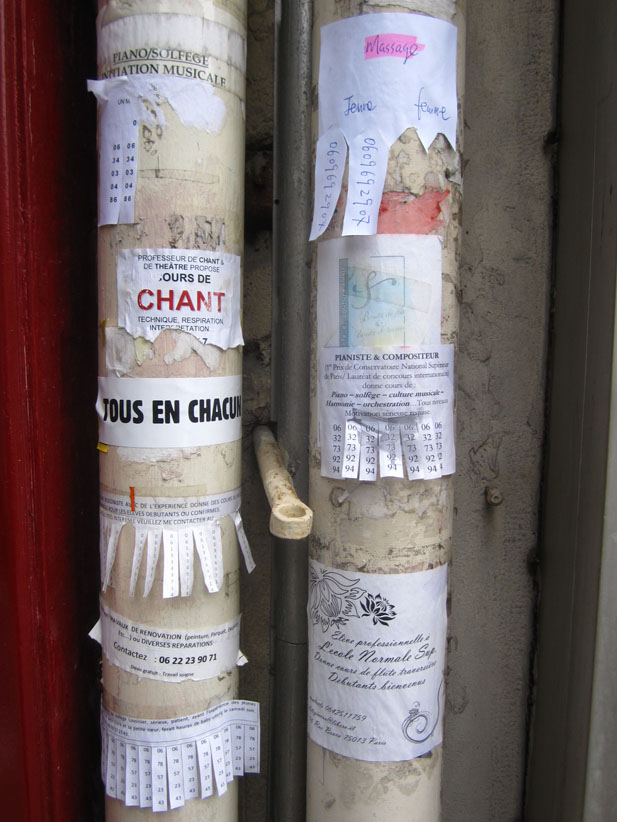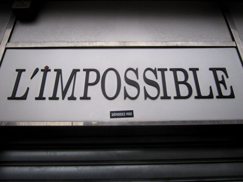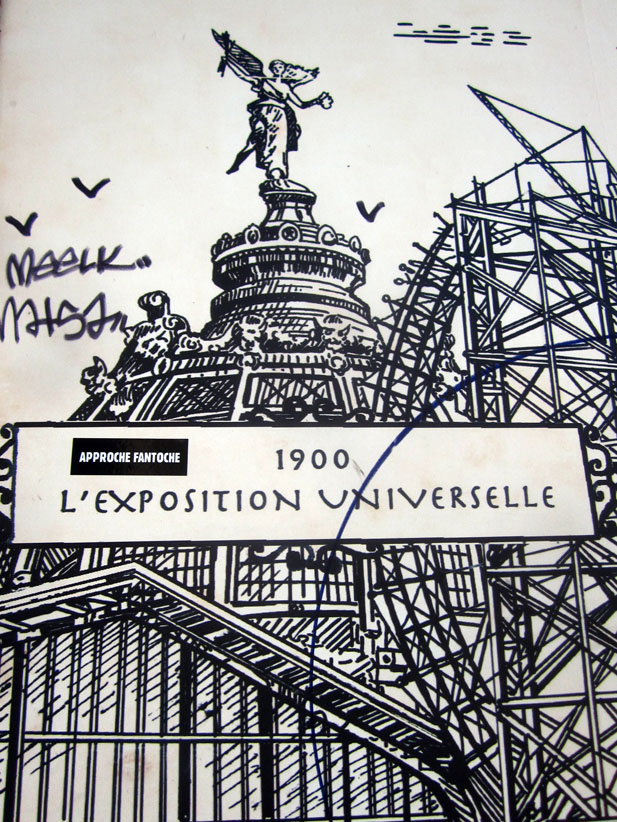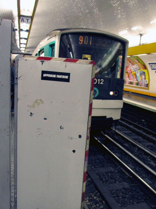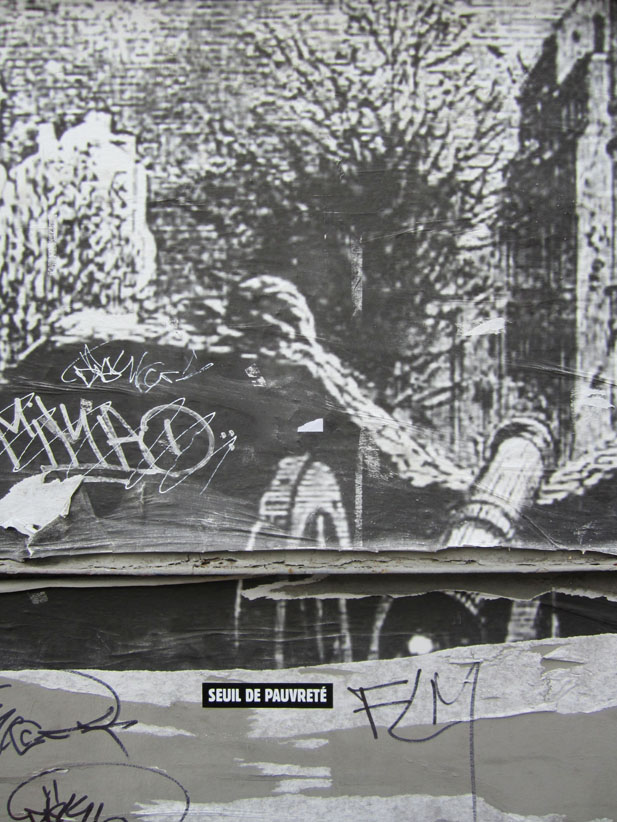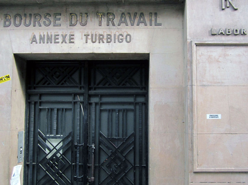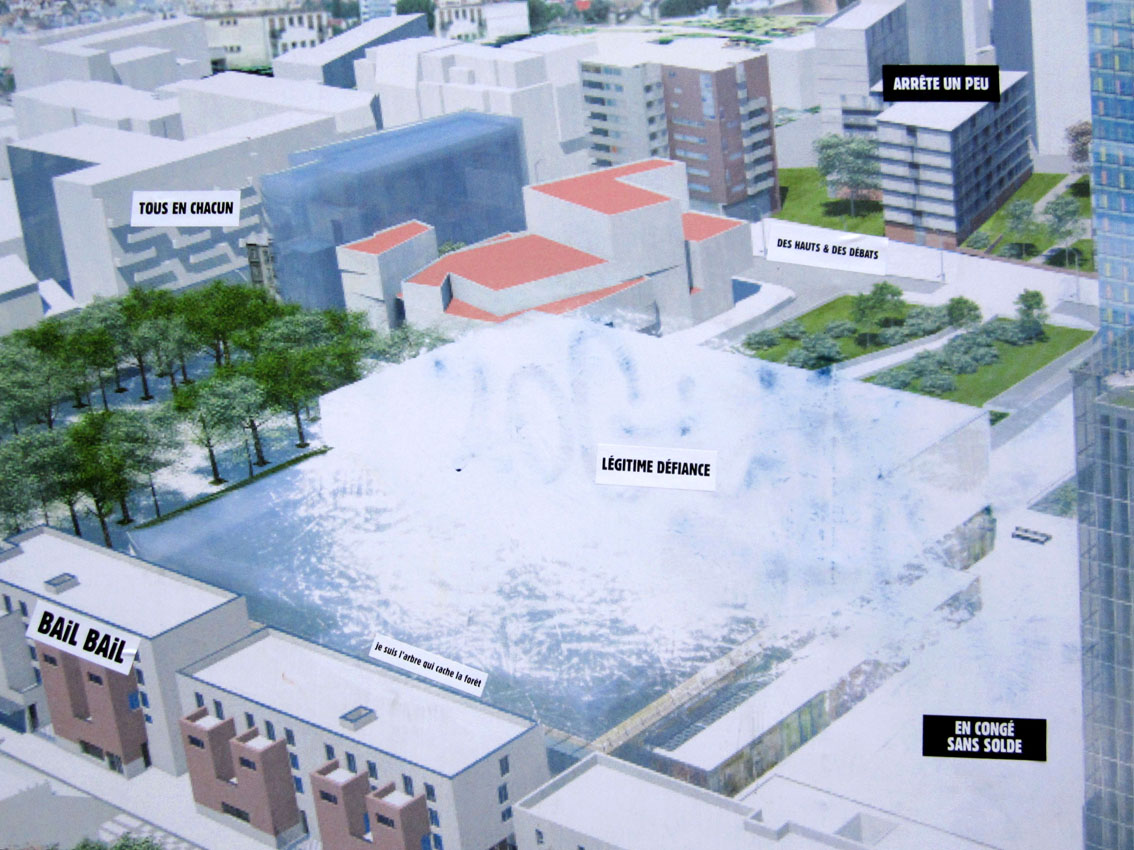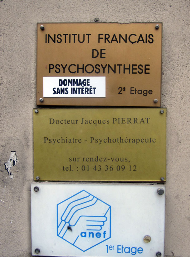 Au détour d’une rue, on remarque telle devanture, telle bouche d’incendie, tel escalator, tel sens interdit, tel pas de porte, telle cabine téléphonique, telle sucette publicitaire et il vous vient une pensée réflexe, une bribe de phrase par association d’idées torves. Et puis, pour passer à l’acte, superposer l’intuition fugace avec ce fragment de réalité, pour que ça colle vraiment, un seul moyen : fabriquer des stickers et en foutre partout où ça nous plaît. Avec l’ami Philippe Bretelle, on a fabriqué une vingtaine de spécimens en noir sur blanc et réciproquement. Histoire d’inventer de petites légendes à la vie quotidienne, de la sous-titrer pour de faux, de créer ici et là très littéralement des lieux-dits. Juste un lot d’étiquette pour dessiller, déranger, déclasser nos habitudes visuelles. En aparté & à l’œil nu parce que, l’air de rien, il suffit d’un regard de travers, d’un détail qui cloche, d’une voix off discordante, d’un foutu lapsus optique pour trouver dans sa tête l’issue de secours et tailler la route ailleurs. archyves.net – Yves Pagès – adages adhésifs –