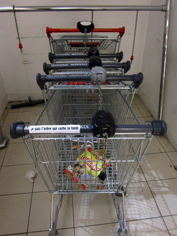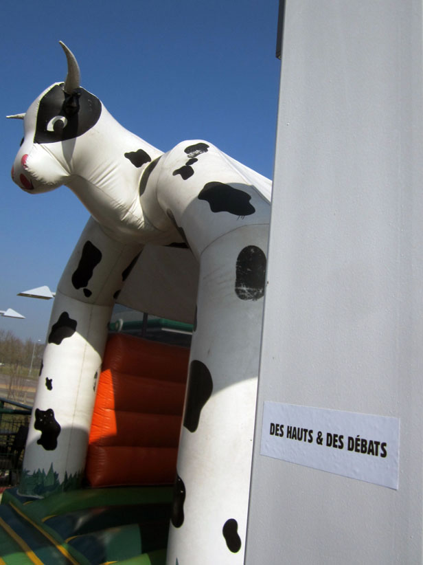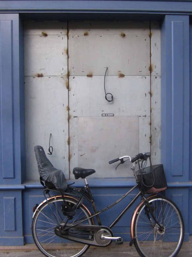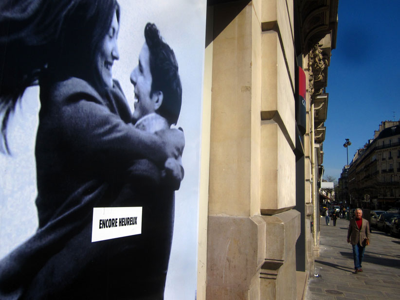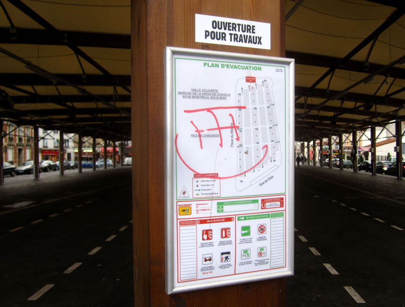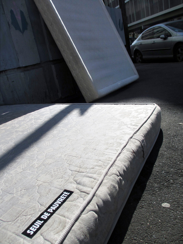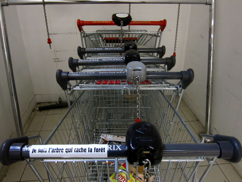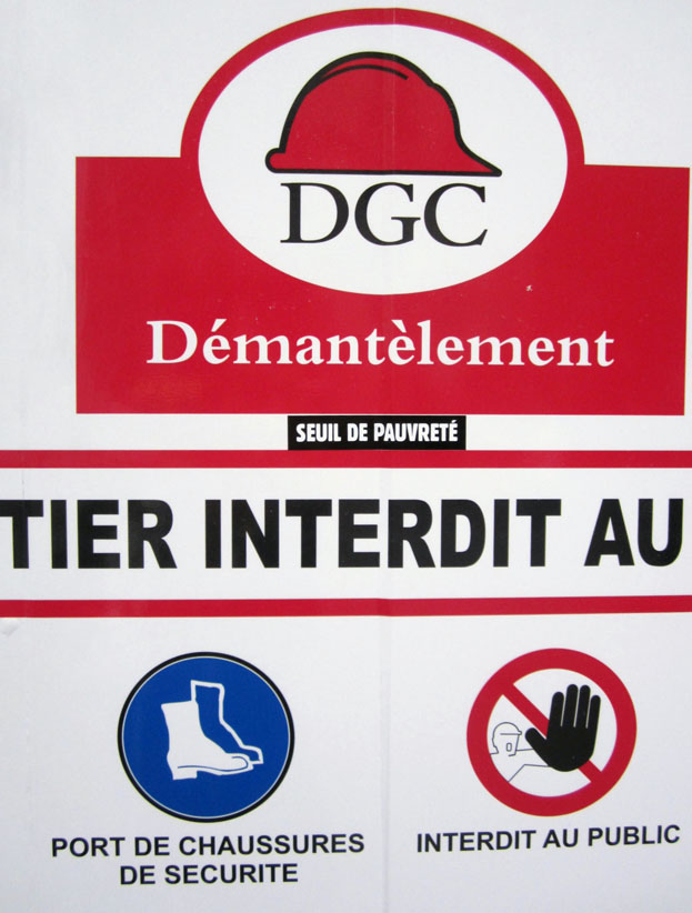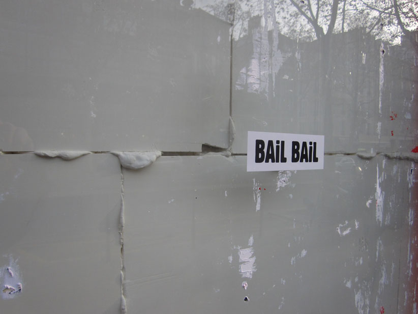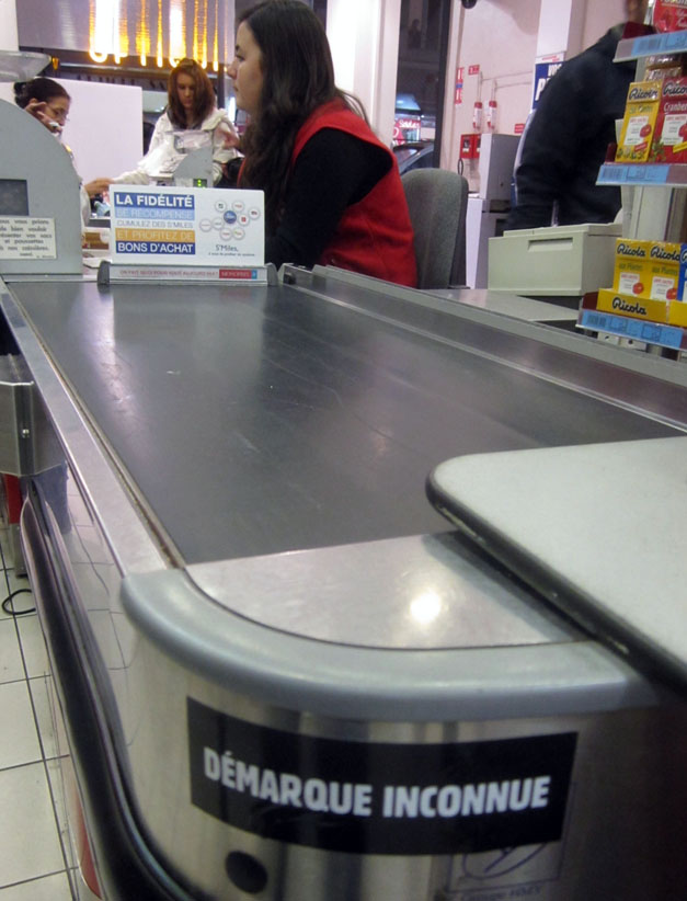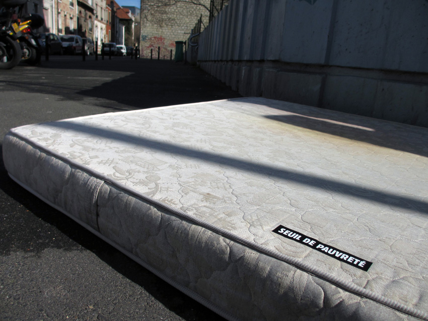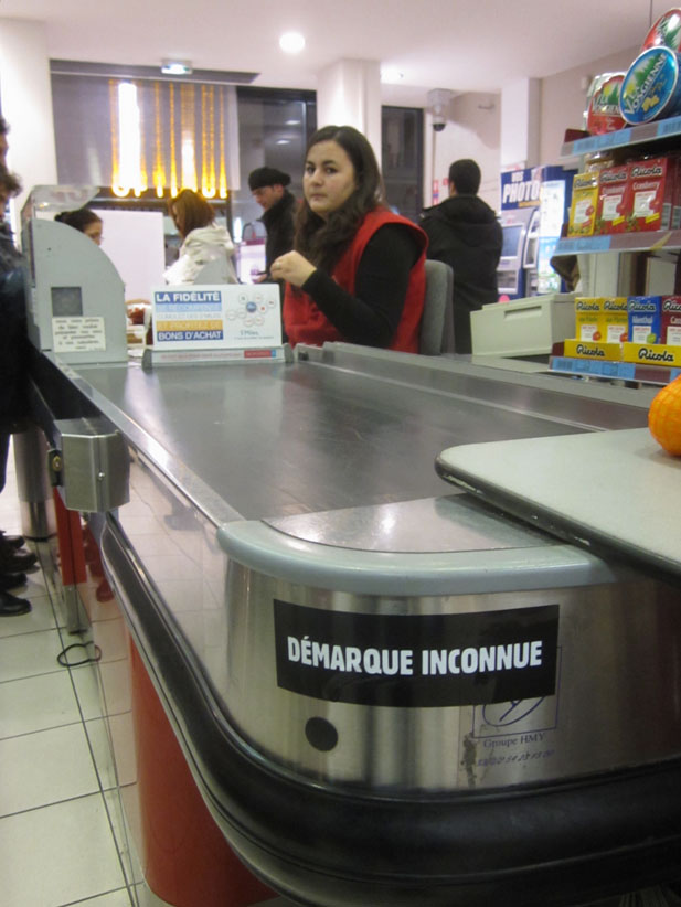 Au détour d’une rue, on remarque telle devanture, telle bouche d’incendie, tel escalator, tel sens interdit, tel pas de porte, telle cabine téléphonique, telle sucette publicitaire et il vous vient une pensée réflexe, une bribe de phrase par association d’idées torves. Et puis, pour passer à l’acte, superposer l’intuition fugace avec ce fragment de réalité, pour que ça colle vraiment, un seul moyen : fabriquer des stickers et en foutre partout où ça nous plaît. Avec l’ami Philippe Bretelle, on a fabriqué une vingtaine de spécimens en noir sur blanc et réciproquement. Histoire d’inventer de petites légendes à la vie quotidienne, de la sous-titrer pour de faux, de créer ici et là très littéralement des lieux-dits. Juste un lot d’étiquette pour dessiller, déranger, déclasser nos habitudes visuelles. En aparté & à l’œil nu parce que, l’air de rien, il suffit d’un regard de travers, d’un détail qui cloche, d’une voix off discordante, d’un foutu lapsus optique pour trouver dans sa tête l’issue de secours et tailler la route ailleurs. archyves.net – Yves Pagès – adages adhésifs –