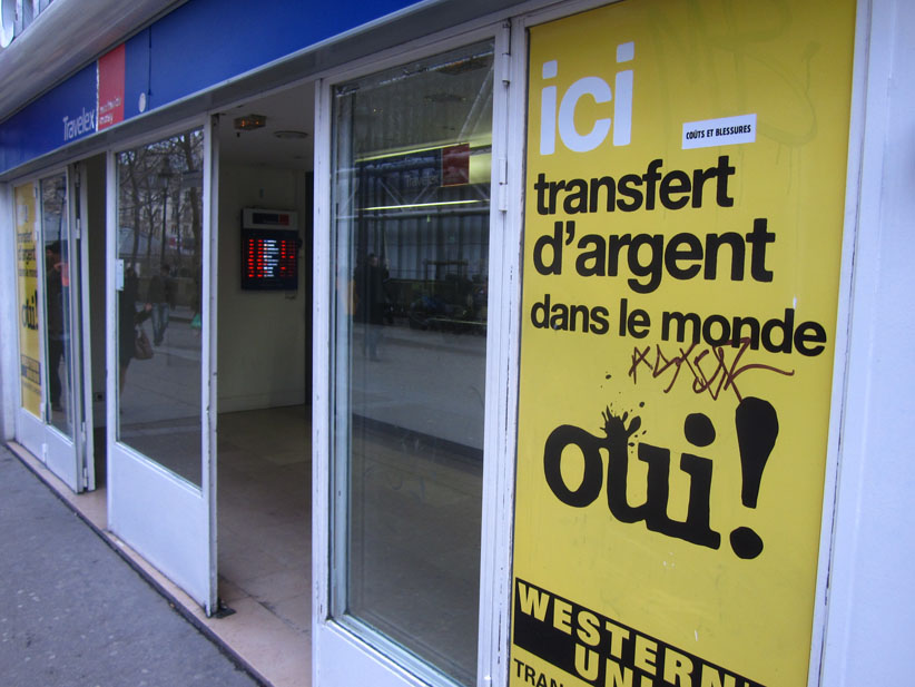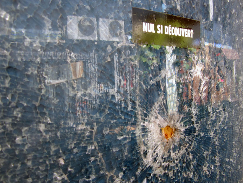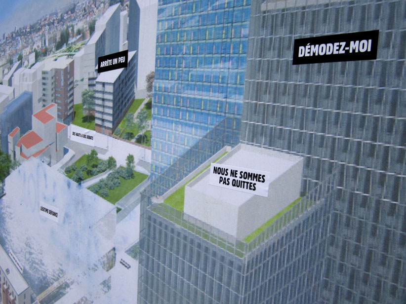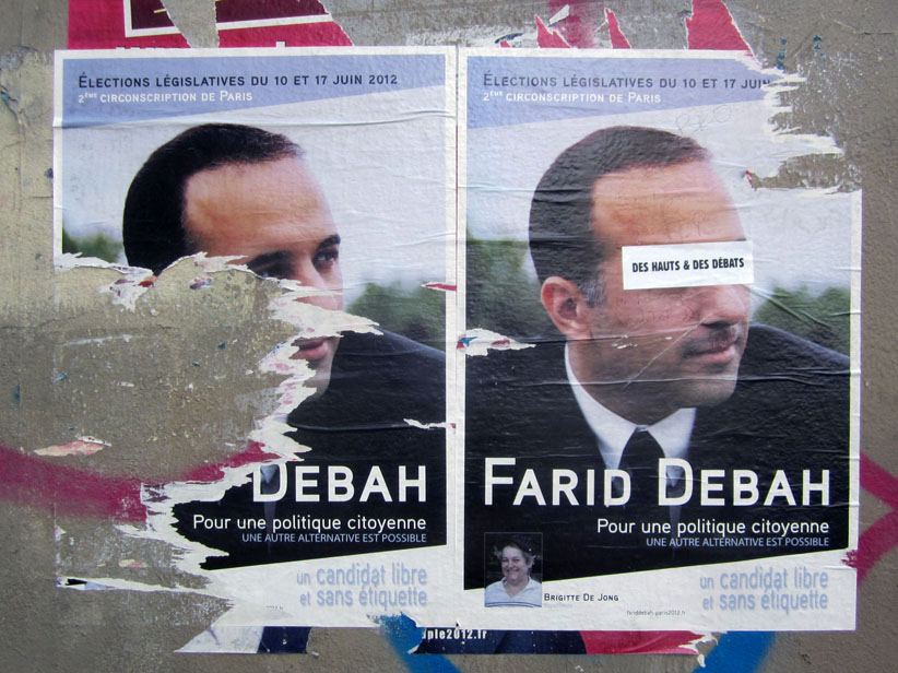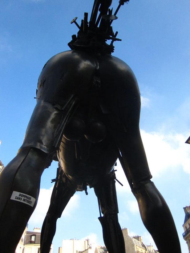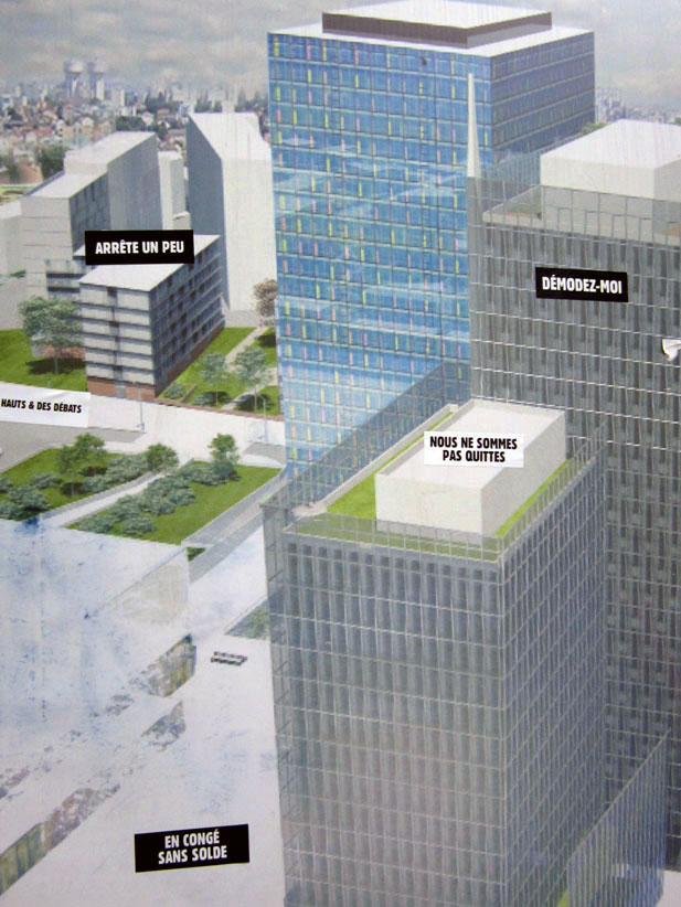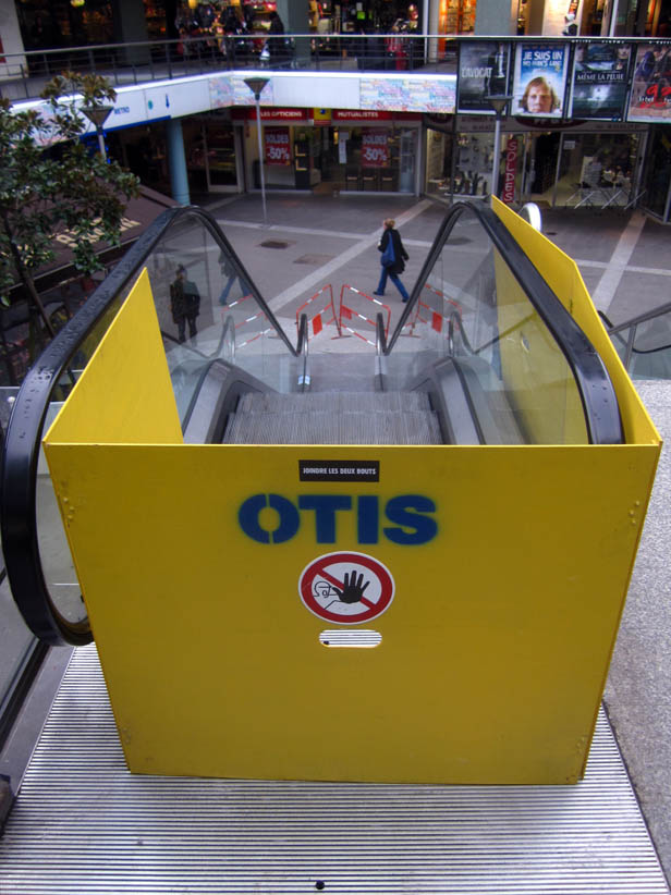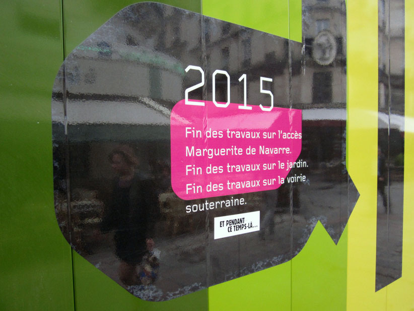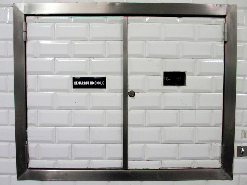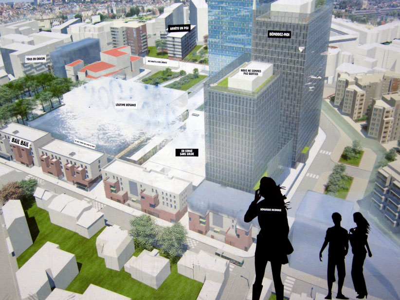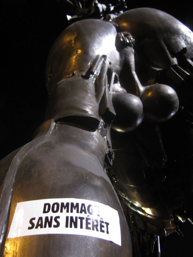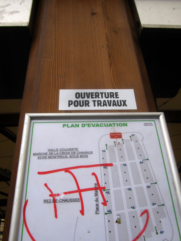 Au détour d’une rue, on remarque telle devanture, telle bouche d’incendie, tel escalator, tel sens interdit, tel pas de porte, telle cabine téléphonique, telle sucette publicitaire et il vous vient une pensée réflexe, une bribe de phrase par association d’idées torves. Et puis, pour passer à l’acte, superposer l’intuition fugace avec ce fragment de réalité, pour que ça colle vraiment, un seul moyen : fabriquer des stickers et en foutre partout où ça nous plaît. Avec l’ami Philippe Bretelle, on a fabriqué une vingtaine de spécimens en noir sur blanc et réciproquement. Histoire d’inventer de petites légendes à la vie quotidienne, de la sous-titrer pour de faux, de créer ici et là très littéralement des lieux-dits. Juste un lot d’étiquette pour dessiller, déranger, déclasser nos habitudes visuelles. En aparté & à l’œil nu parce que, l’air de rien, il suffit d’un regard de travers, d’un détail qui cloche, d’une voix off discordante, d’un foutu lapsus optique pour trouver dans sa tête l’issue de secours et tailler la route ailleurs. archyves.net – Yves Pagès – adages adhésifs –
